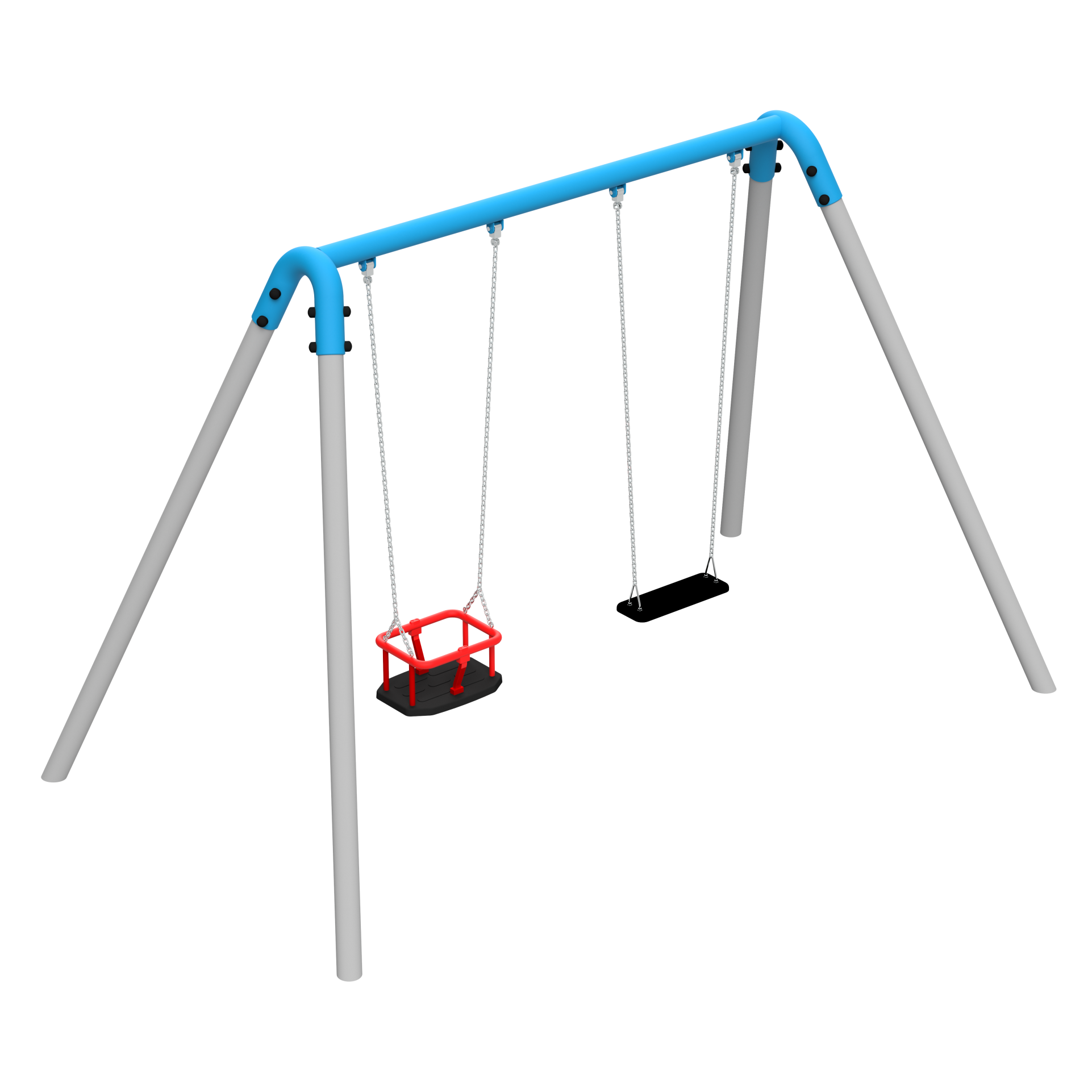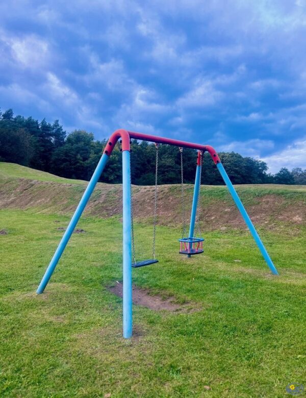 Atestowane łańcuchy, trwałe zawiesia oraz solidne siedziska zapewniają płynny, stabilny i bezpieczny ruch wahadłowy. Całość zaprojektowano z myślą o ergonomii, komforcie użytkowania i pełnym bezpieczeństwie.