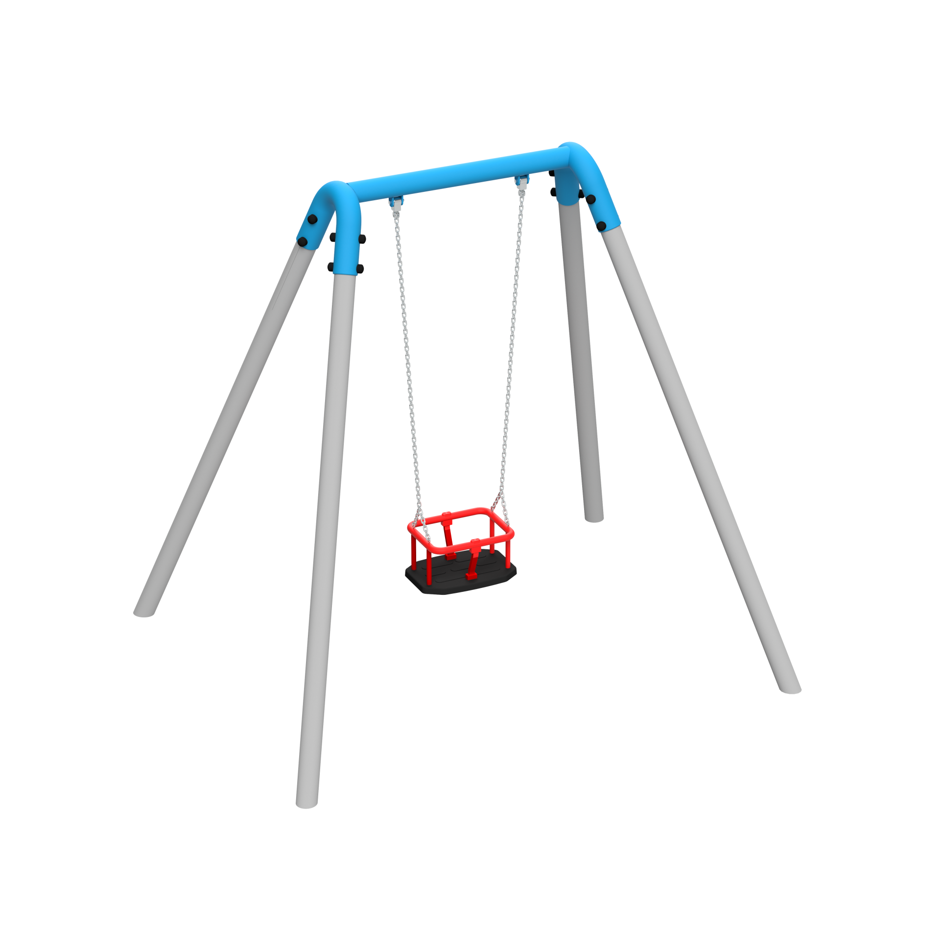 Huśtawka pojedyncza to klasyczne, wahadłowe urządzenie rekreacyjne, zaprojektowane z myślą o uniwersalnym zastosowaniu na publicznych placach zabaw.