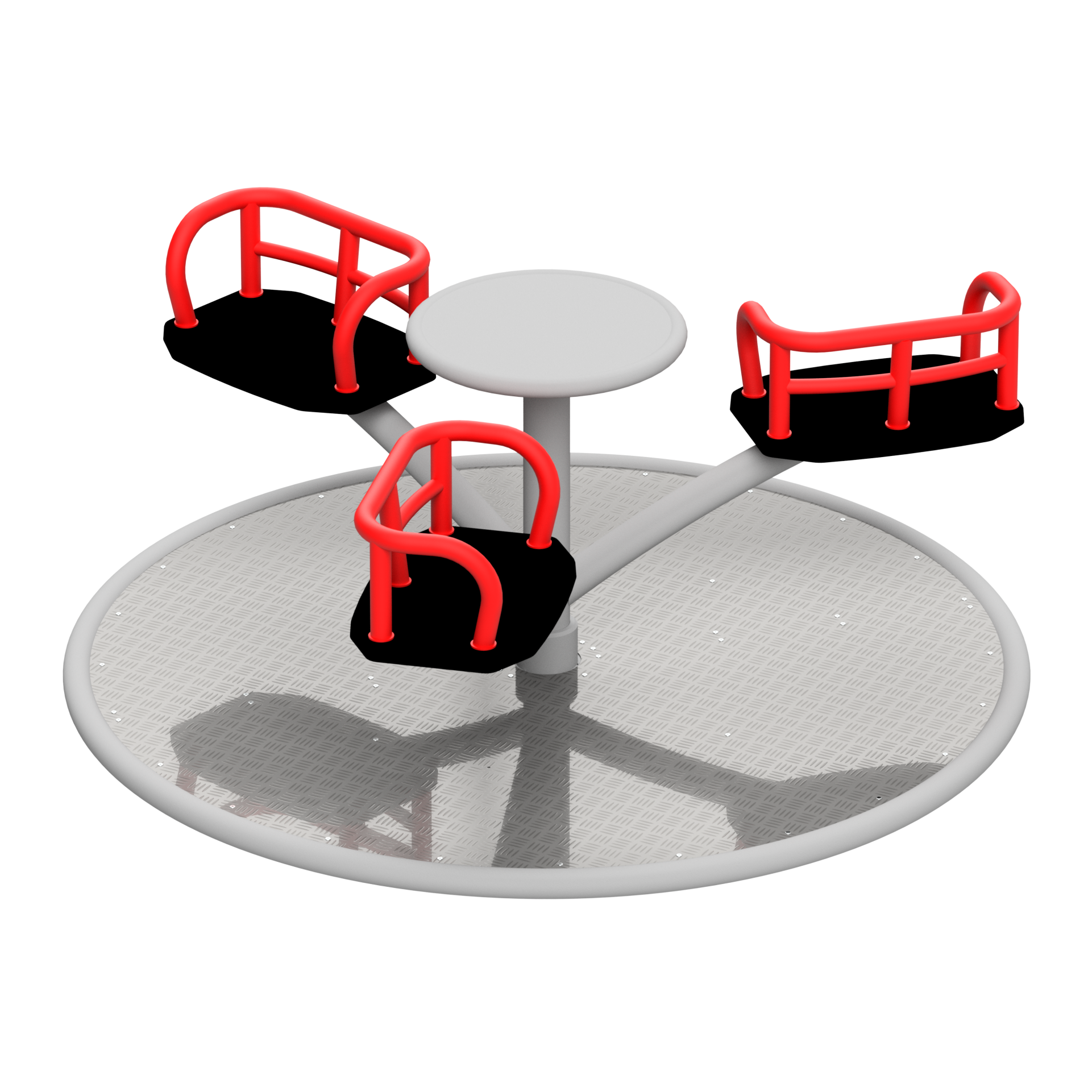 Karuzela Bora 3 została wykonana ze stali zabezpieczonej antykorozyjnie i malowanej proszkowo, co gwarantuje odporność na warunki atmosferyczne oraz wieloletnią trwałość. Prosta, elegancka forma konstrukcji sprawia, że urządzenie doskonale sprawdzi się zarówno na klasycznych placach zabaw, jak i w nowoczesnych, starannie zaprojektowanych przestrzeniach rekreacyjnych.