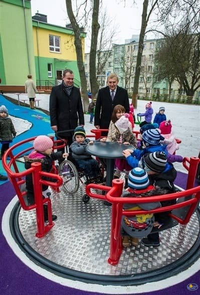 Karuzela integracyjna Pontiac 3 to solidne, dostępne dla wszystkich, inkluzywne urządzenie obrotowe, które stworzyliśmy z myślą o wspólnej zabawie dzieci o różnym poziomie sprawności, w tym użytkowników poruszających się na wózkach inwalidzkich.