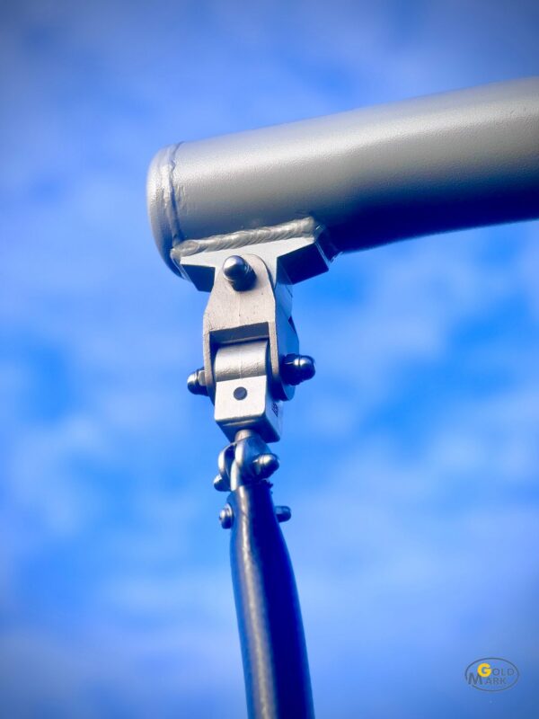 Konstrukcja karuzeli Monsoon 2 oparta jest na stalowym słupie centralnym oraz ramionach wykonanych z wysokiej jakości stali, która została zabezpieczona antykorozyjnie i pomalowana farbą proszkową. Takie rozwiązanie zapewnia wieloletnią odporność na intensywną eksploatację oraz zmienne warunki atmosferyczne.