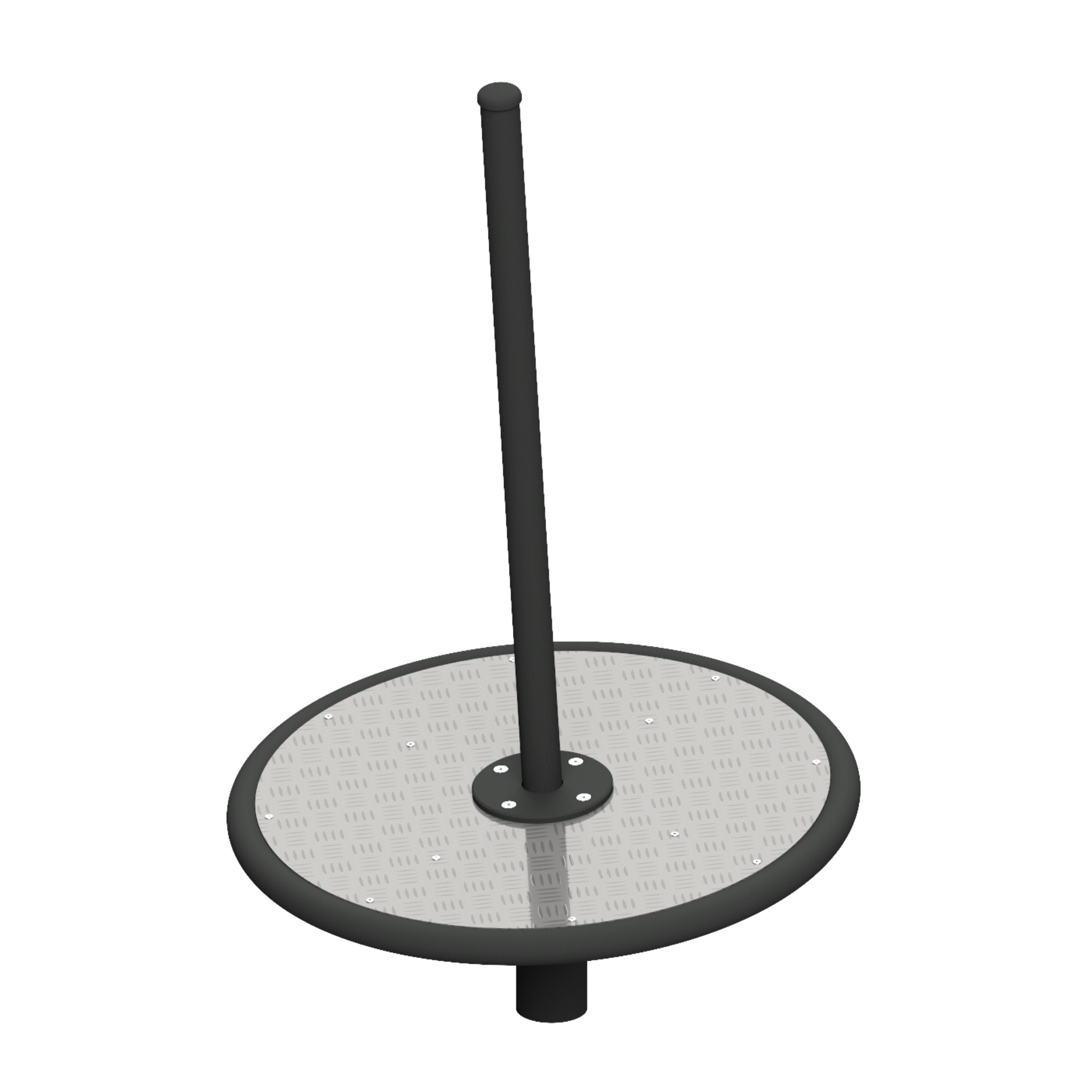 Centralnym elementem urządzenia jest stalowy słupek, umożliwiający wygodne chwytanie i stabilizację podczas ruchu. Wokół niego znajduje się obrotowa platforma o średnicy 70 cm, z podłogą wykończoną aluminium ryflowanym. Konstrukcja urządzenia pozwala na jednoczesne obracanie się wokół osi oraz balansowanie w poziomie, co dodaje zabawie dynamiki i wymaga większego zaangażowania motorycznego.