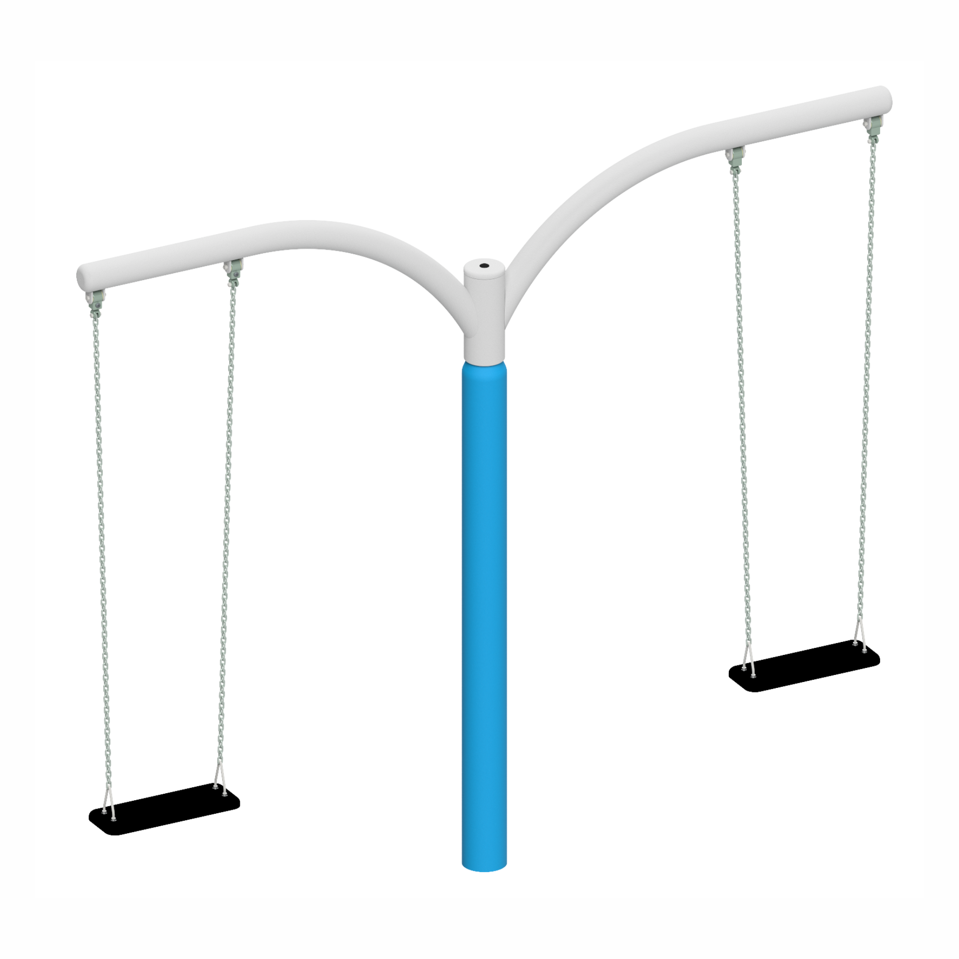 Notos 2 to nowoczesna, dwuramienna karuzela słupowa wykonana z solidnych, trwałych materiałów, łącząca w sobie funkcje klasycznej huśtawki i karuzeli obrotowej.