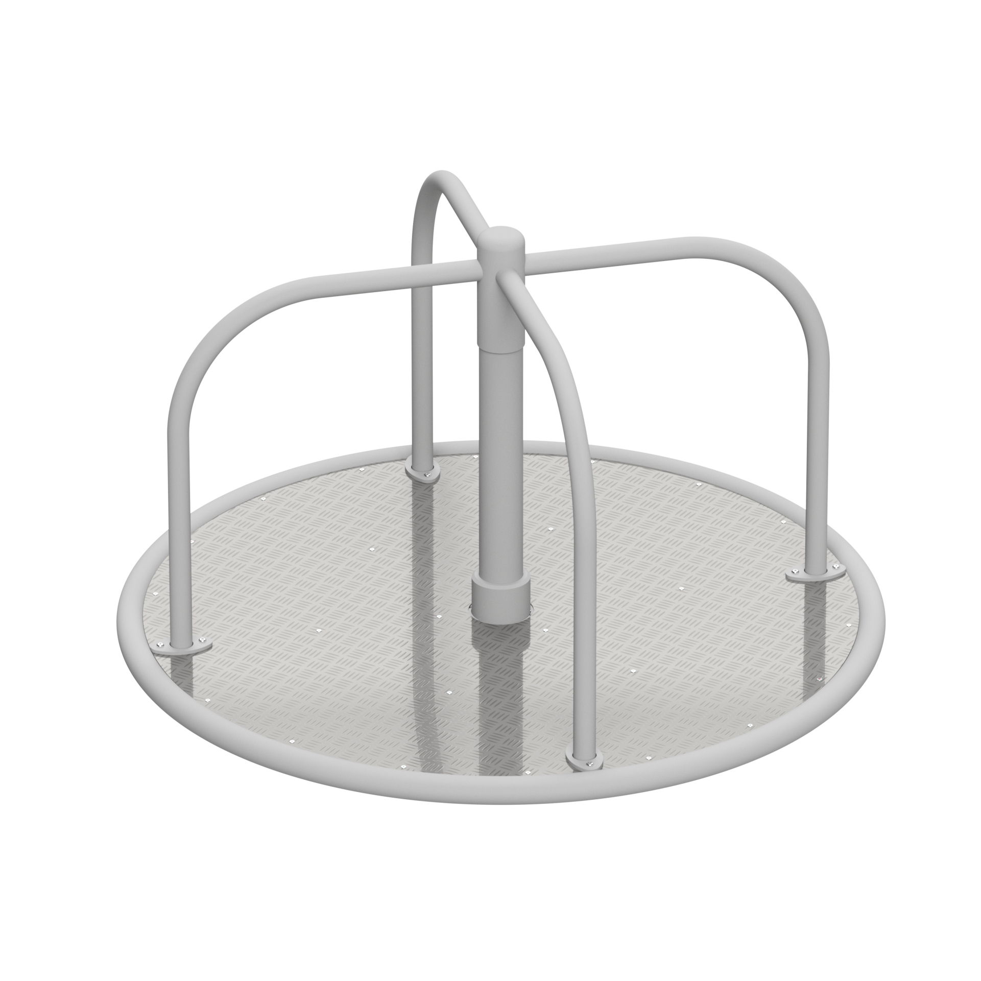 Konstrukcja karuzeli wykonana jest ze stali czarnej zabezpieczonej antykorozyjnie i malowanej proszkowo, co gwarantuje dużą wytrzymałość, odporność na intensywne użytkowanie oraz długą żywotność urządzenia. Minimalistyczna forma krzyżowego uchwytu nadaje karuzeli elegancki, nowoczesny wygląd, który doskonale sprawdzi się zarówno na tradycyjnych placach zabaw, jak i w przestrzeniach o podwyższonych wymaganiach estetycznych.