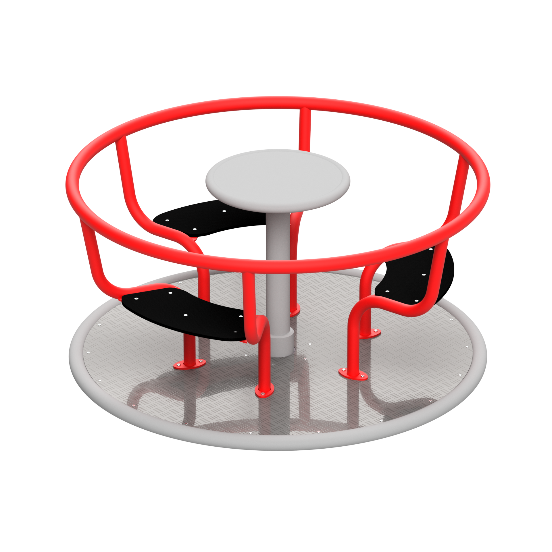 W centralnej części karuzeli, znajduje się wygodny element obrotowy, dzięki któremu użytkownicy mogą samodzielnie wprawić karuzelę w ruch. Ten wariant karuzeli Tornado jest dostępny z trzema siedziskami, co pozwala na jednoczesną zabawę trojga dzieci.