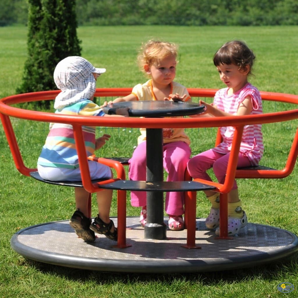 W centralnej części karuzeli znajduje się wygodny element obrotowy, dzięki któremu użytkownicy mogą samodzielnie wprawić karuzelę w ruch. Ten wariant karuzeli Tornado jest dostępny z czterema siedziskami, co pozwala na jednoczesną zabawę czworga dzieci.