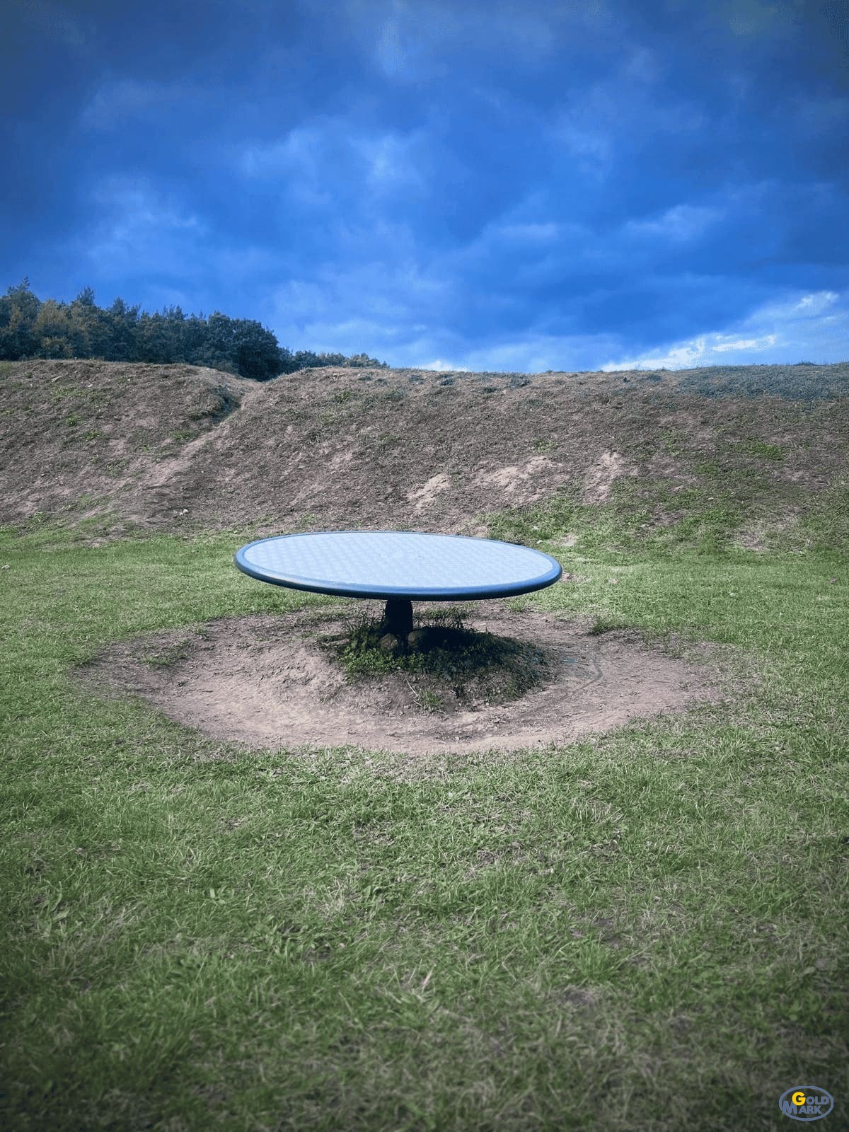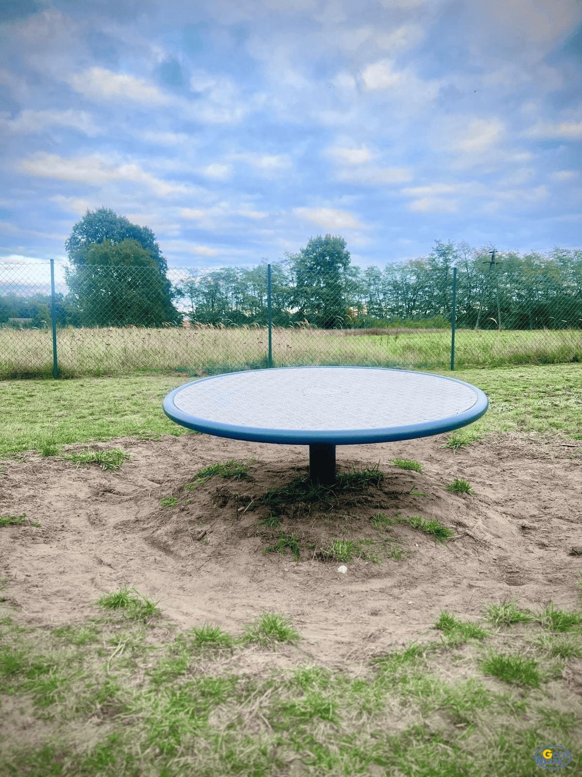 Karuzela UFO to atrakcyjne i dynamiczne urządzenie obrotowe o średnicy 130 cm, stworzone z myślą o starszych dzieciach i młodzieży, które preferują aktywną, wymagającą równowagi formę zabawy.