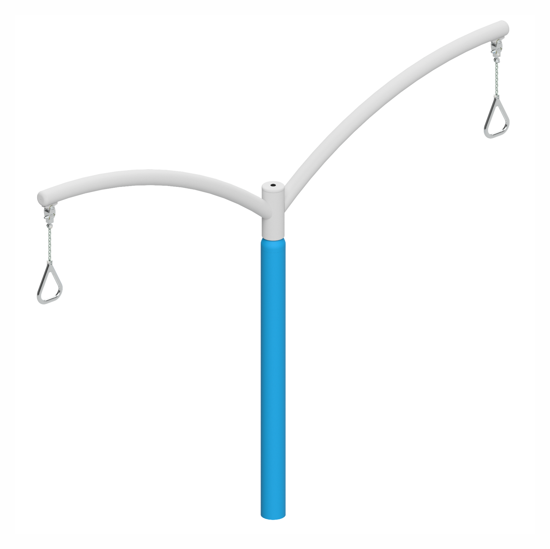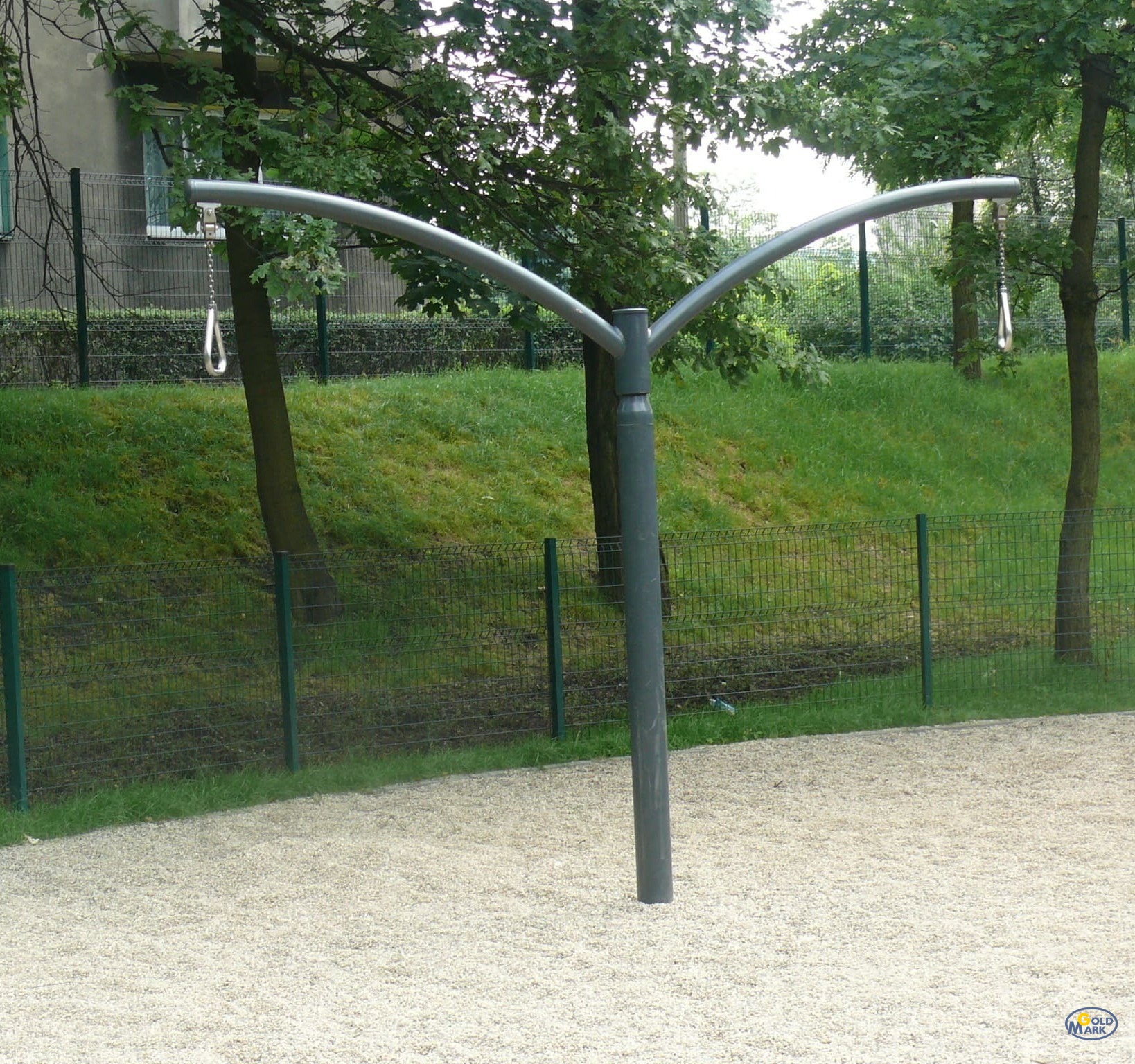 Karuzela słupowa Zefir 2 to nowoczesne, dwuramienne urządzenie obrotowe stworzone z myślą o dynamicznej i rozwijającej zabawie na współczesnych placach zabaw.